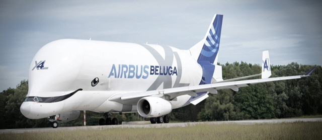 Großes Front-Frachttor: Nase kann geöffnet werden zum Laden großer Teile. Cockpit wurde abgesenkt, um den Frachtraum zu maximieren. Kann zwei A350-Tragflächen gleichzeitig transportieren (ein Vorteil gegenüber der ST-Version). 30 % mehr Transportkapazität im Vergleich zur Beluga ST.